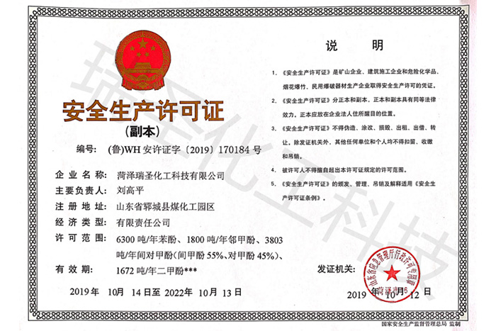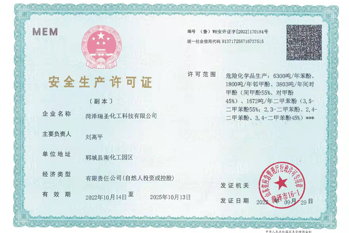 菏澤瑞圣化工科技有限公司是國內(nèi)酚類產(chǎn)品的生產(chǎn)企業(yè)。公司現(xiàn)有年加工粗酚20000萬噸的生產(chǎn)裝置及能力,可生產(chǎn)苯酚、鄰甲酚、間對甲酚、二甲酚等產(chǎn)品。產(chǎn)品廣泛應(yīng)用于合成樹脂、香料、染料、絕緣材料、阻燃劑、農(nóng)藥、醫(yī)藥、中間體等精細(xì)化工領(lǐng)域。本公司以誠為本,信譽(yù)保證,靠過硬的產(chǎn)品質(zhì)量和完善的服務(wù)贏得了國內(nèi)外廣大用戶的贊譽(yù)。產(chǎn)品暢銷國內(nèi)二十多個省市地區(qū),并地打入了國際市場,產(chǎn)品遠(yuǎn)銷意大利、巴西、印度、韓國、日本、臺灣等國家和地區(qū)。 公司坐落在菏澤市鄆城縣煤化工業(yè)園區(qū)。生產(chǎn)及檢測設(shè)備精湛,管理機(jī)制科學(xué),并擁有技術(shù)隊伍,產(chǎn)品質(zhì)量達(dá)到標(biāo)準(zhǔn)。 公司 2024年為打破國外對光刻膠及芯片樹脂所需間對甲酚,鄰甲酚,對甲酚的壟斷,經(jīng)過與國內(nèi)知名院校合作研究,設(shè)備進(jìn)行技改工藝進(jìn)行調(diào)整,產(chǎn)品質(zhì)量完全滿足光刻膠樹脂的需要。改變了長期依賴進(jìn)口的局面,為中國芯國產(chǎn)化貢獻(xiàn)了一份力量。 可靠的產(chǎn)品、可靠的質(zhì)量、可靠的信譽(yù)、完善的服務(wù)是我們的宗旨,我們將竭誠與海內(nèi)外各界朋友精誠合作,共圖發(fā)展,攜手共進(jìn),創(chuàng)造你我共同的未來。 企業(yè)的使命感與社會的責(zé)任感讓我們今天在
